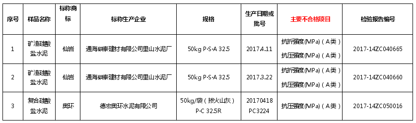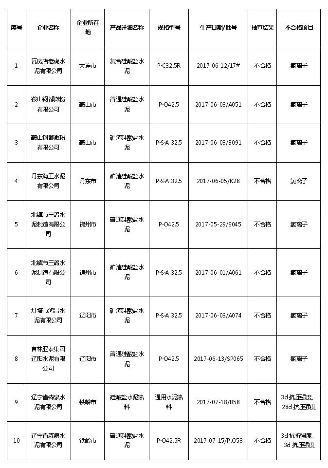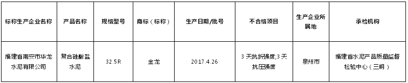 福建省質(zhì)監(jiān)局公布水泥抽查不合格產(chǎn)品為: