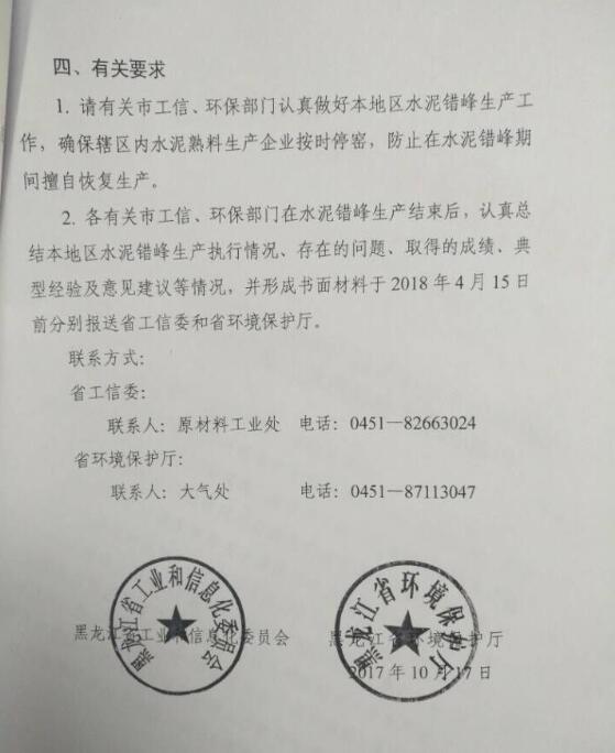 黑龍江省工業(yè)和信息化委員會(huì)黑龍江省環(huán)境保護(hù)廳關(guān)于黑龍江省2017-2018年度水泥錯(cuò)峰