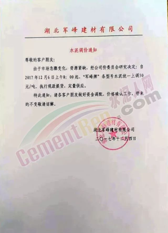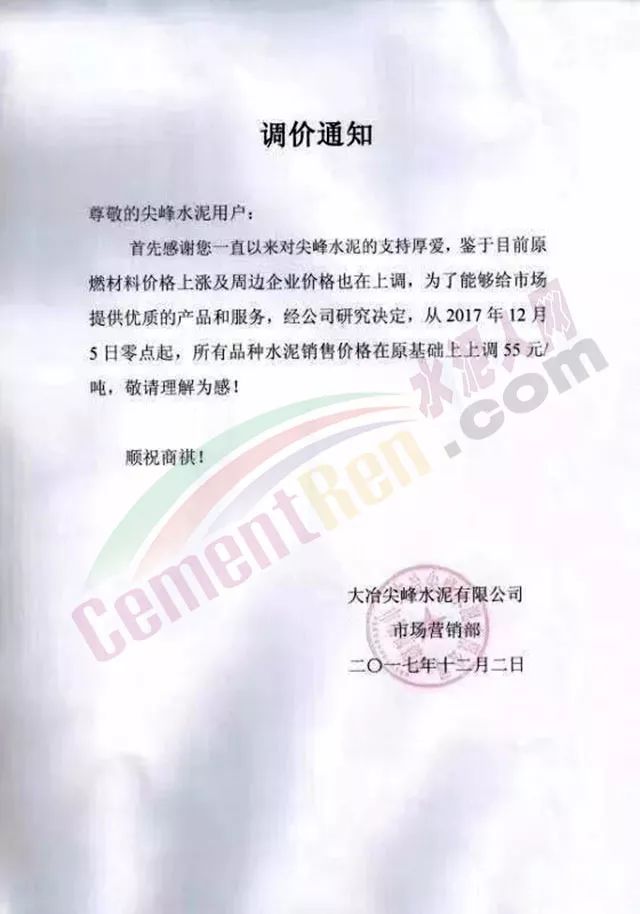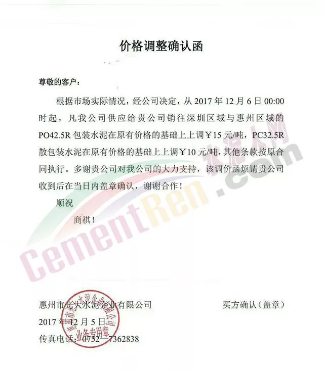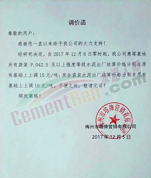 處于南方地區(qū)的華南區(qū)域主導(dǎo)企業(yè)也于昨日發(fā)布了水泥價(jià)格小幅上調(diào)的通知: