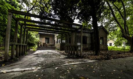 沿著廠區(qū)內(nèi)的林蔭道走到底就是當(dāng)年難民醫(yī)院的所在地小黃樓。