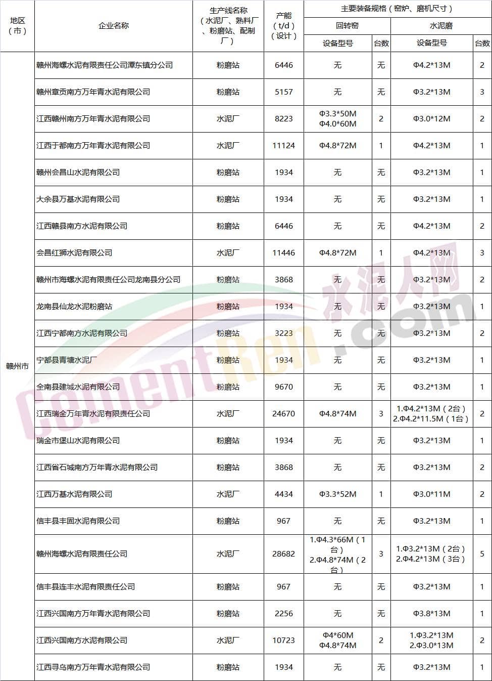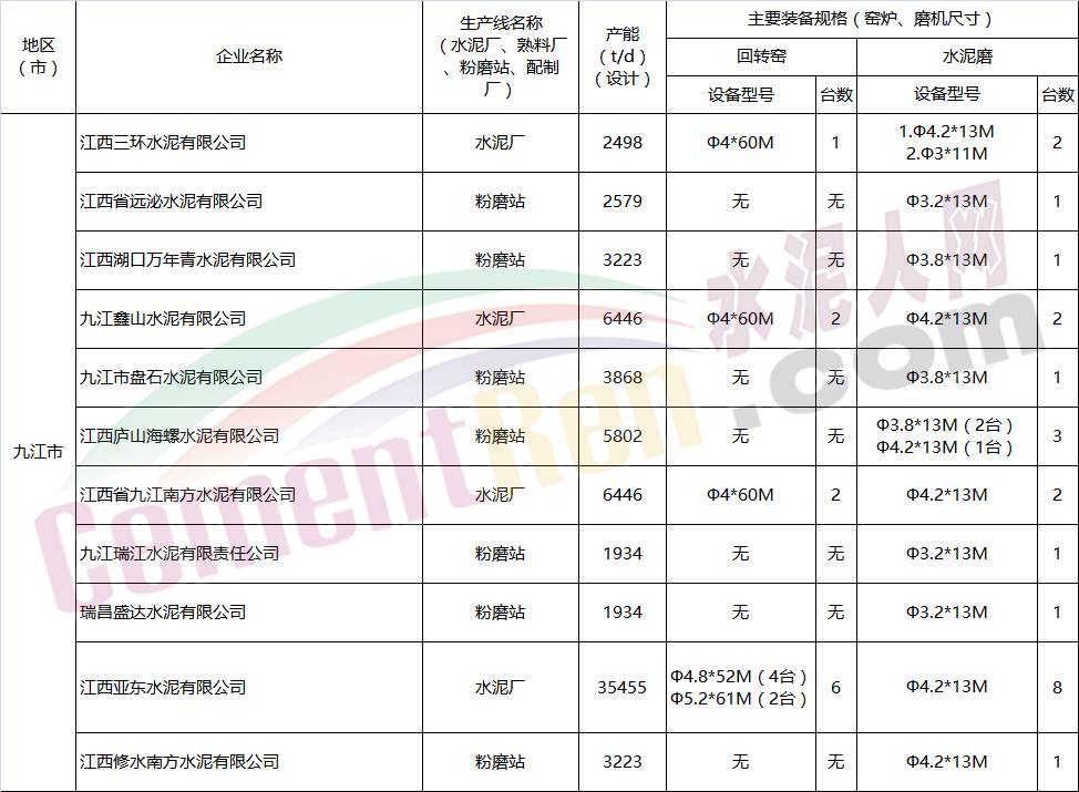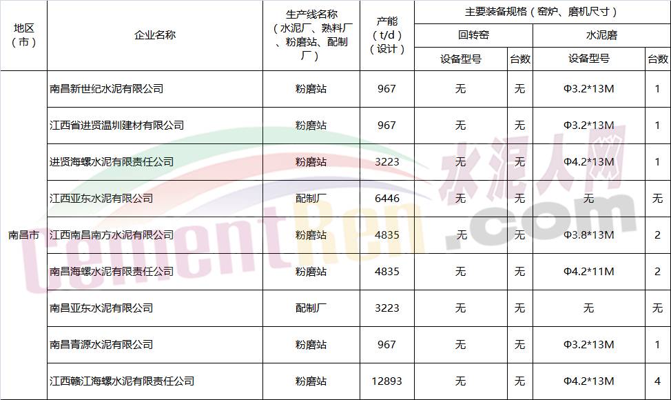 江西省水泥企業(yè)名單如下: