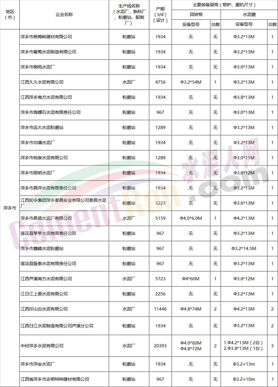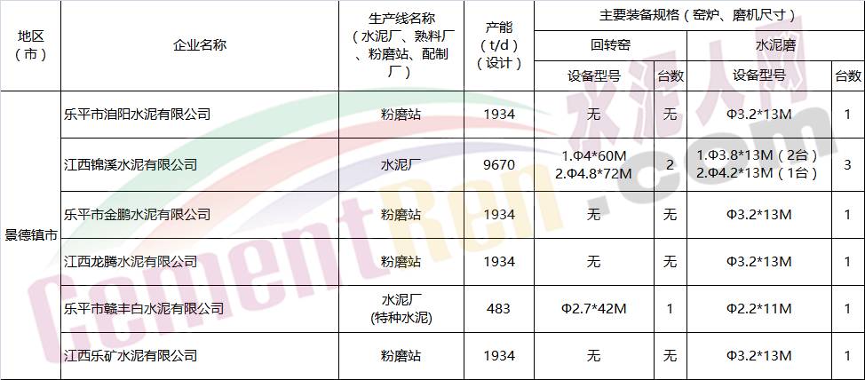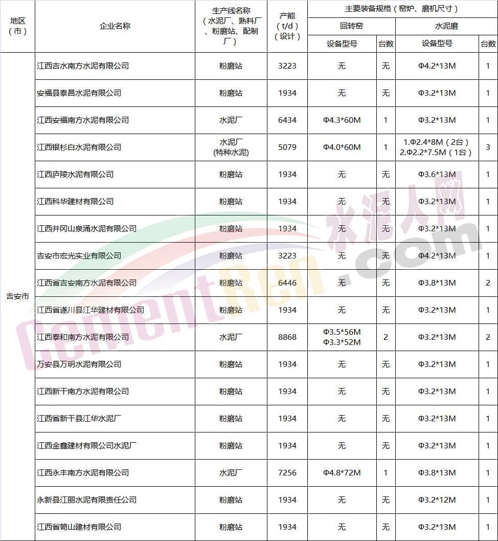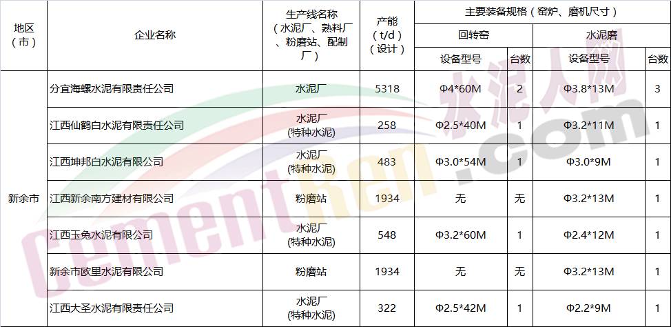 江西省水泥企業(yè)名單