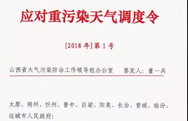 日前,山西省大氣污染防治工作領(lǐng)導組辦公室發(fā)布了今年第1號應對重污染天氣調(diào)度令。要求包括太原市在內(nèi)的10個市于今日12時至1月15日24時期間,采取不低于橙色級別的應急減排措施。