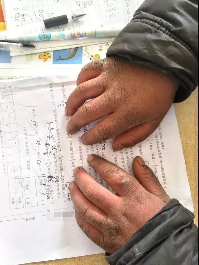“冰花男孩”手上的凍瘡觸目驚心