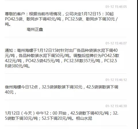 隨著海螺元月11日在華東地區(qū)熟料的降價,12日皖北地區(qū)的水泥價格也應(yīng)聲而降。主導(dǎo)企業(yè)發(fā)布通知稱根據(jù)市場情況自12日下午三點(diǎn)起各企業(yè)水泥價格下調(diào)50-20元/噸。