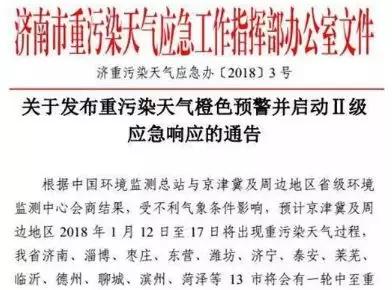 除京津冀晉魯豫之外,從1月12日起至17日,山東13個市將出現(xiàn)一輪中至重度污染。目前,濟南市已發(fā)布重污染天氣橙色預警。