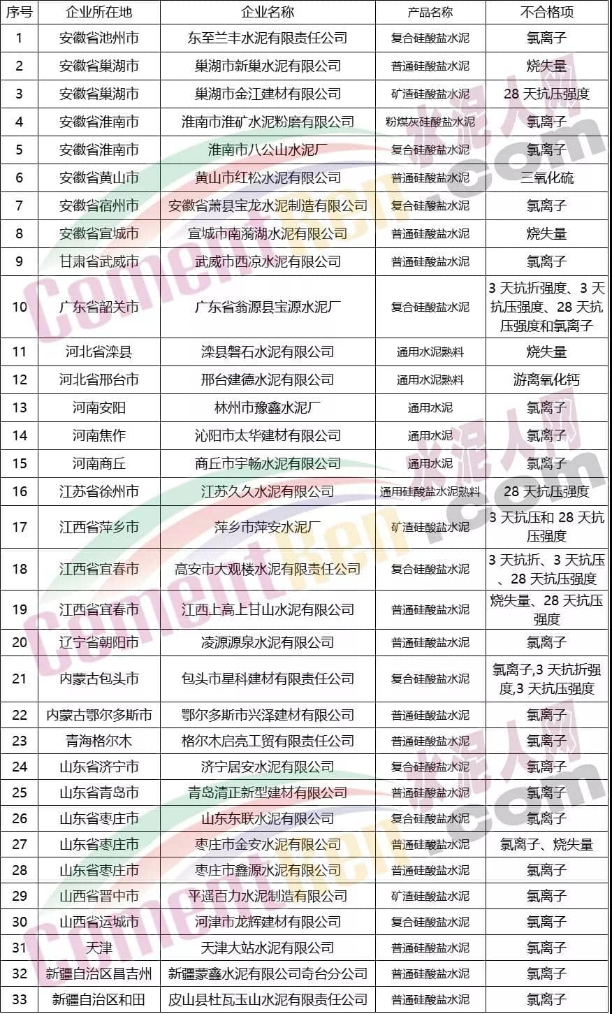 水泥產(chǎn)品連續(xù)兩年未抽到樣品的企業(yè)名單