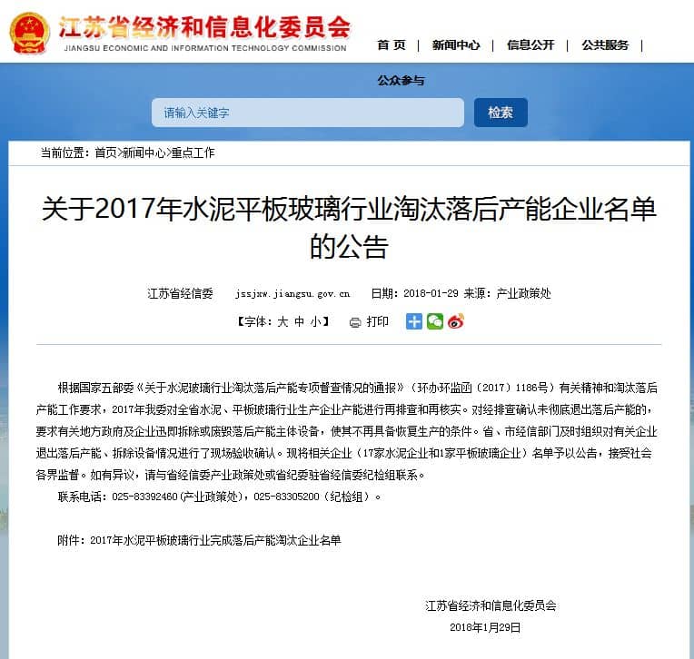 【水泥人網(wǎng)】日前,江蘇省經(jīng)信委發(fā)布關(guān)于2017年水泥平板玻璃行業(yè)淘汰落后產(chǎn)能企業(yè)名單的公告。公告稱:根據(jù)國家五部委《關(guān)于水泥玻璃行業(yè)淘汰落后產(chǎn)能專項督查情況的通報》有關(guān)精神和淘汰落后產(chǎn)能工作要求,2017年江蘇省工信委對江蘇省全省水泥行業(yè)生產(chǎn)企業(yè)產(chǎn)能進(jìn)行再排查和再核實。