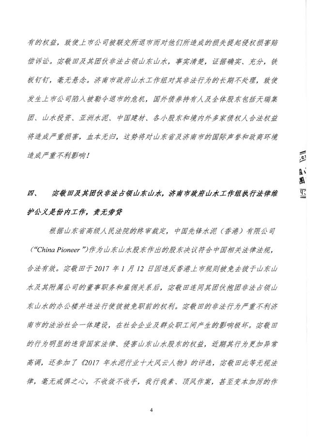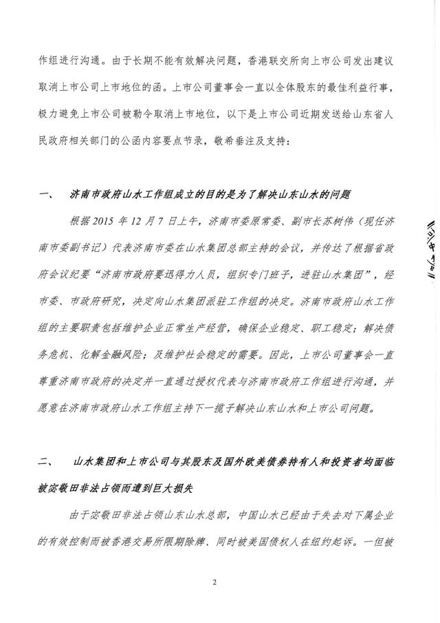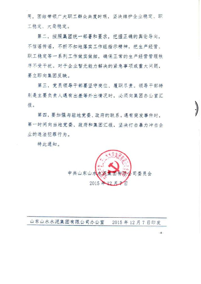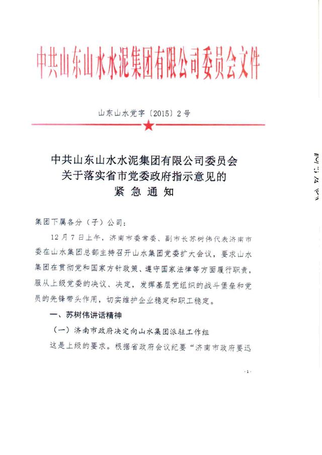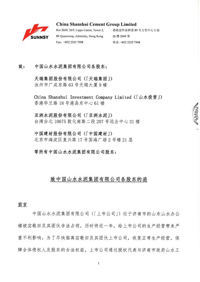 【水泥人網(wǎng)】山水水泥公布,鑒于該公司面臨被建議取消上市地位的迫切風險,該公司與山東山水水泥集團有限公司董事會溝通后現(xiàn)向公司全體股東發(fā)出信函。