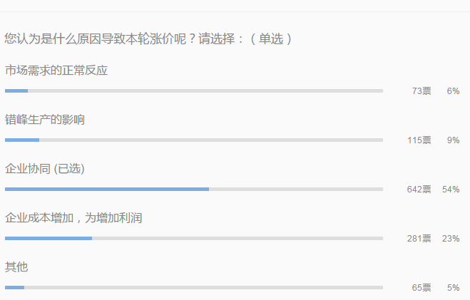 6、54%的人士認(rèn)為企業(yè)協(xié)同導(dǎo)致水泥價(jià)格上漲的直接原因