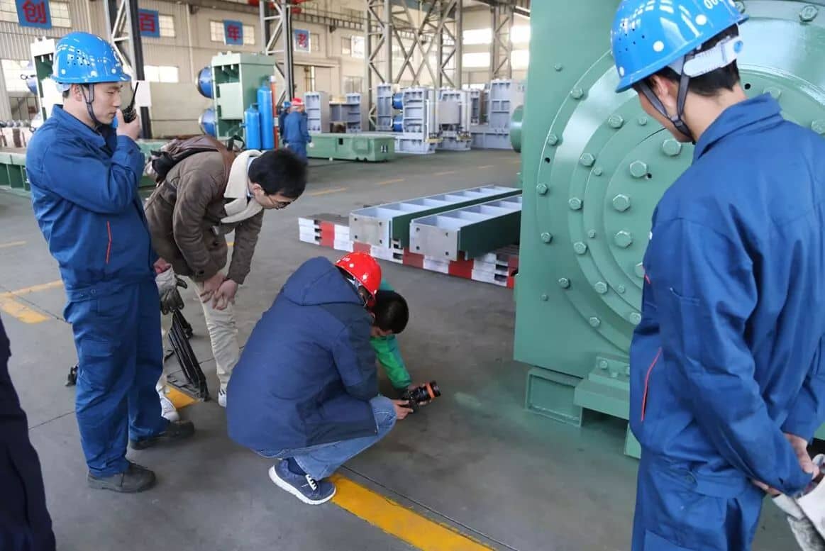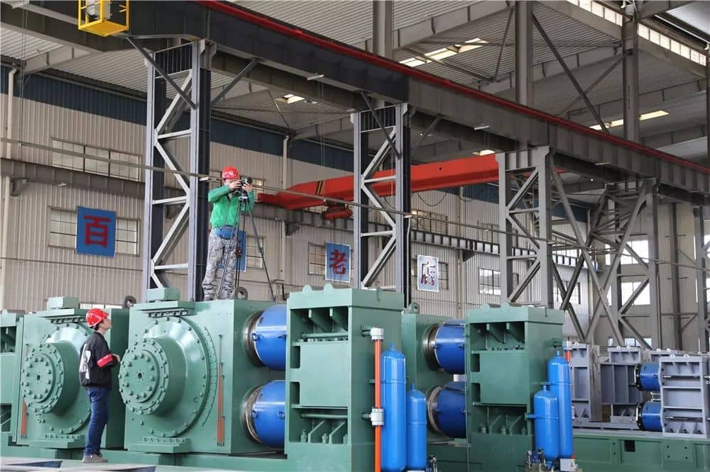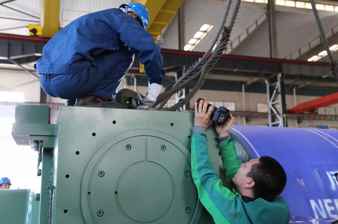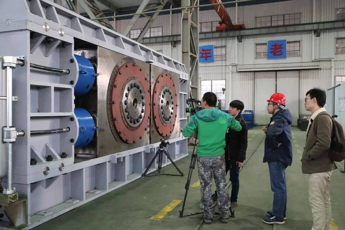 這臺我國擁有自主知識產(chǎn)權(quán)的輥壓機(jī),直徑達(dá)2米,整機(jī)重量達(dá)438噸,各項(xiàng)經(jīng)濟(jì)技術(shù)指標(biāo)達(dá)到了世界先進(jìn)水平。像這樣超大規(guī)格的輥壓機(jī)解決了大型水泥生產(chǎn)線高效粉磨的難題,具有粉碎效率高、生產(chǎn)能力大、工藝系統(tǒng)簡捷、維護(hù)工作量小等特點(diǎn),是目前國際公認(rèn)粉碎效率最高的設(shè)備。輥壓機(jī)不僅應(yīng)用在水泥行業(yè),也廣泛應(yīng)用在冶金、礦山、有色金屬選礦及鋼渣深加工等領(lǐng)域。2017年1月,成功入選了國家工信部公布的第一批制造業(yè)單項(xiàng)冠軍示范企業(yè)名單。