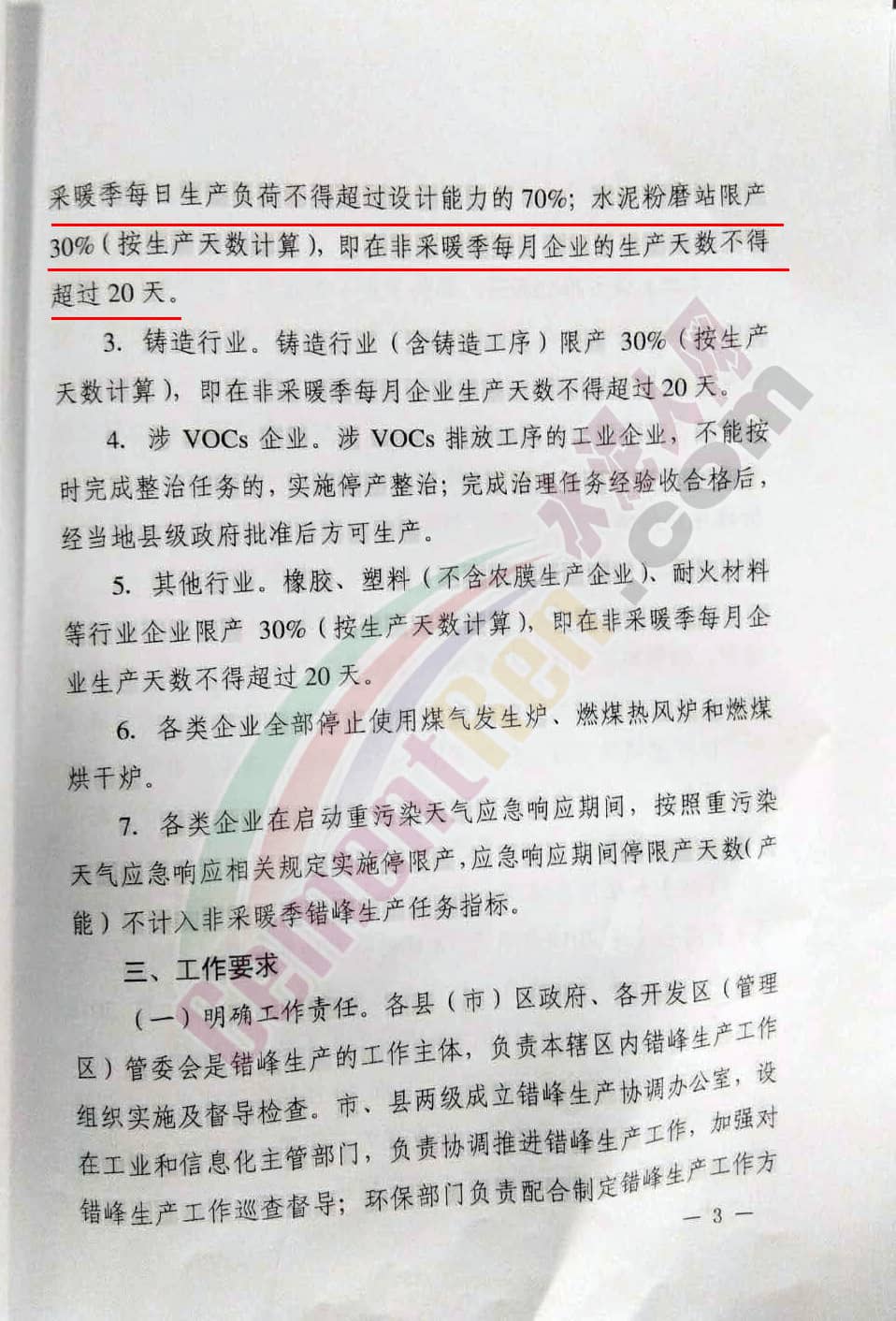 其中針對(duì)于水泥行業(yè)的錯(cuò)峰生產(chǎn)要求為,水泥窯限產(chǎn)30%(按設(shè)計(jì)產(chǎn)能計(jì)算),即在非采暖季每日生產(chǎn)負(fù)荷不得超過設(shè)計(jì)能力的70%;水泥粉磨站限產(chǎn)30%(按生產(chǎn)天數(shù)計(jì)算),即在非采暖季每月企業(yè)的生產(chǎn)天數(shù)不得超過20天。