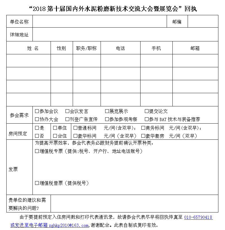 2.會(huì)議費(fèi)用:a)1800元/人;(含會(huì)議資料費(fèi)、會(huì)務(wù)費(fèi)、餐費(fèi)、紀(jì)念品等);凡4月30日前匯款者每人可優(yōu)惠200元。b)會(huì)議期間將安排新技術(shù)、新成果信息發(fā)布,發(fā)言時(shí)間為15分鐘。要求發(fā)言的企業(yè)請(qǐng)?zhí)崆芭c會(huì)務(wù)組聯(lián)系確定。
