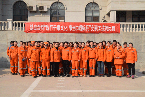 3月8日下午,贊皇金隅工會舉辦了“踐行干事文化 爭當(dāng)巾幗標(biāo)兵”女職工拔河比賽。來自生產(chǎn)、職能管理部門與深州冀東公司等4支參賽隊50余名隊員及拉拉隊員組織有序的參加了比賽,每支參賽隊由9名隊員組成。公司經(jīng)理孫建勛、黨委書記常延輝等領(lǐng)導(dǎo)出席活動,并為參賽隊吶喊加油。