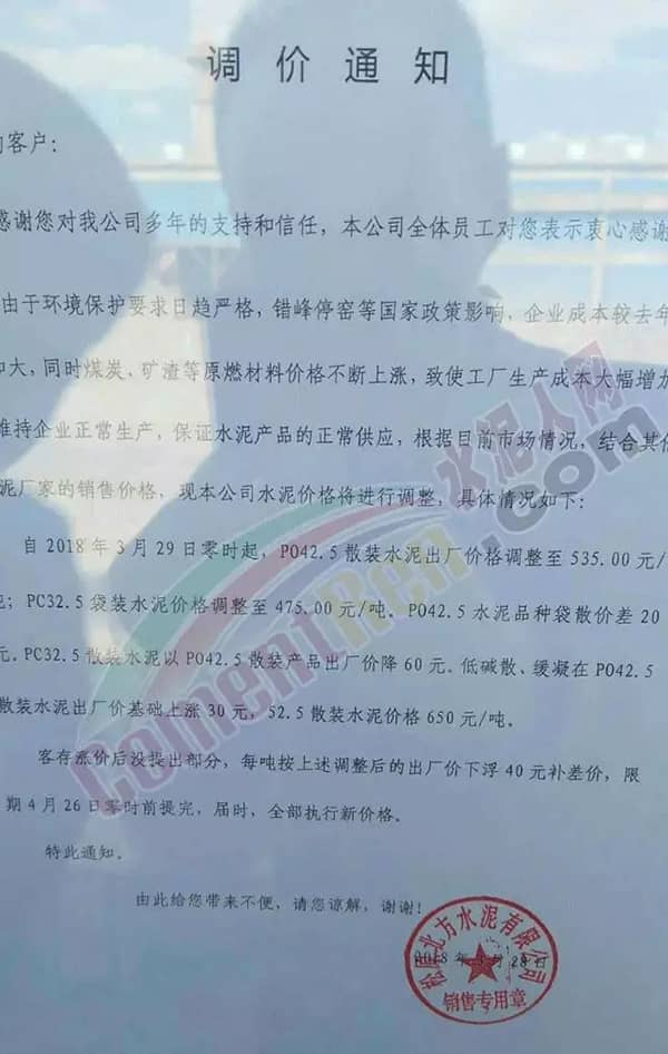調(diào)價(jià)通知稱(chēng),客存漲價(jià)后沒(méi)有提出部分,每噸按上述調(diào)整后的出廠價(jià)下浮40元補(bǔ)差價(jià),限期4月26日零時(shí)前提完。屆時(shí),將全部執(zhí)行新價(jià)格。