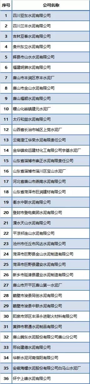 2017年部分被環(huán)保部門通報的水泥企業(yè)