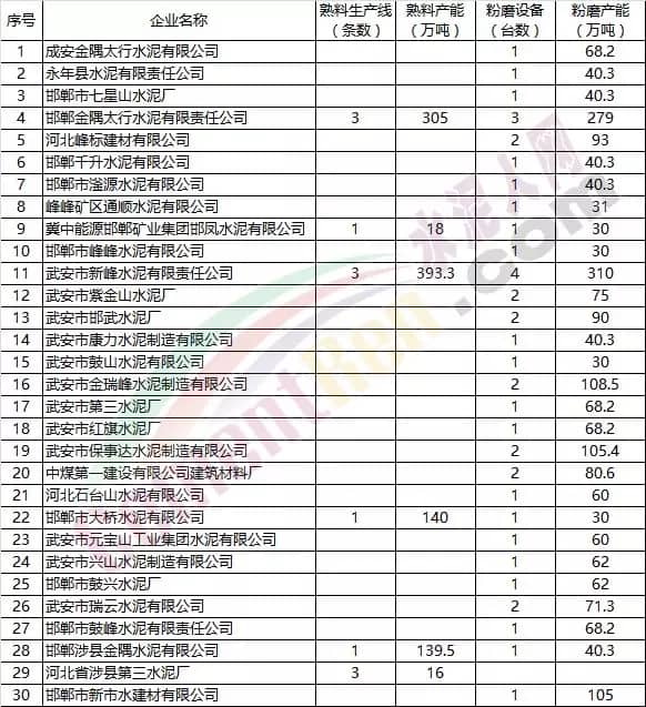 邯鄲市水泥企業(yè)名單