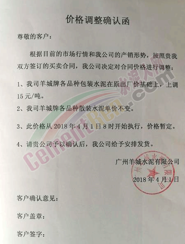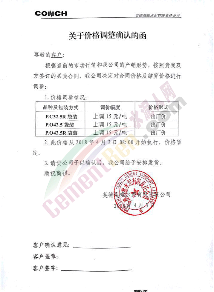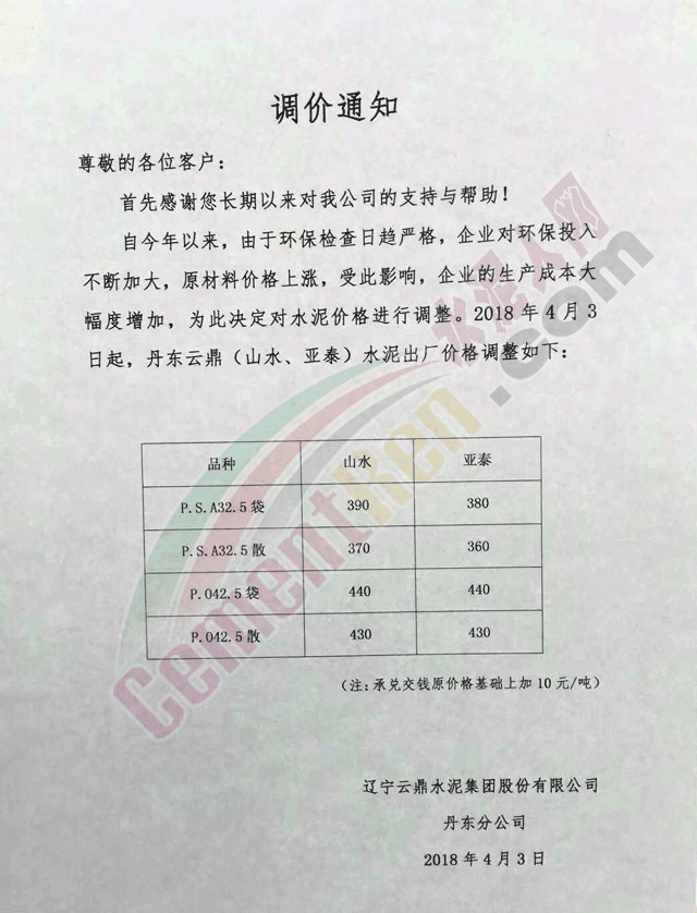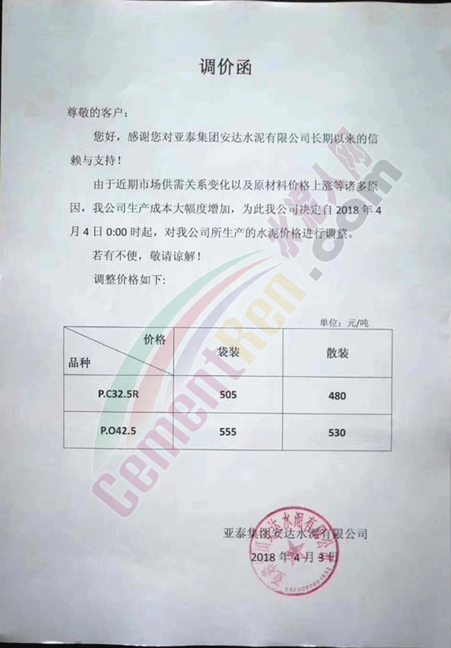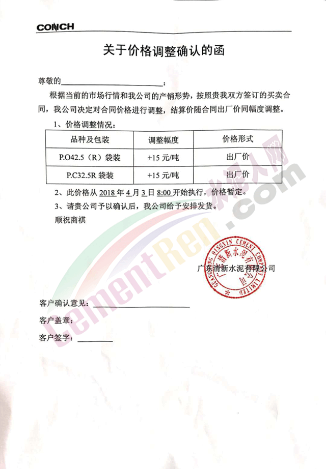 華南地區(qū)水泥企業(yè)提價通知如下: