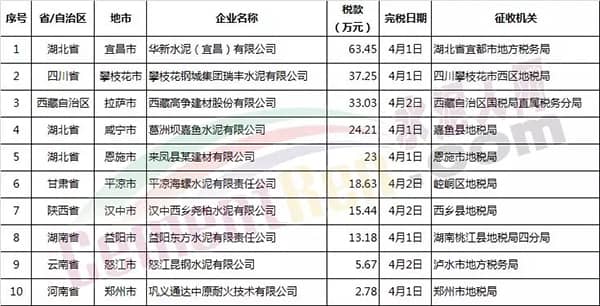 4月1日以來,各地陸續(xù)開出首張環(huán)保稅稅票。其中涉及多家水泥企業(yè)。