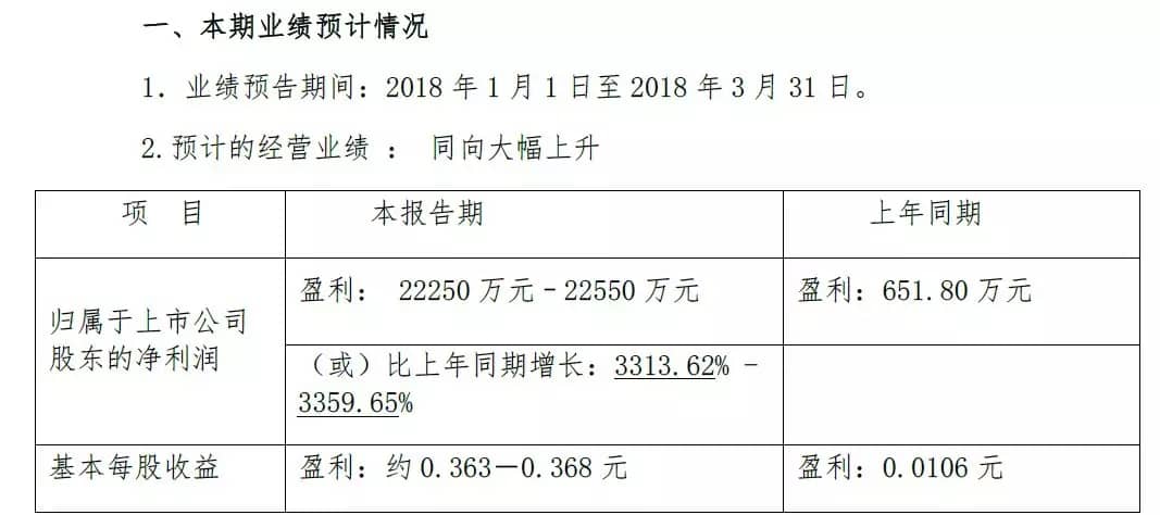 公司2018年第一季度業(yè)績(jī)預(yù)計(jì)盈利8600萬元左右。2.公司本次業(yè)績(jī)預(yù)盈主要是主營(yíng)業(yè)務(wù)扭虧為盈和非經(jīng)營(yíng)性損益大幅增加所致。3. 扣除上述非經(jīng)常性損益事項(xiàng)后,歸屬于上市公司股東的凈利潤(rùn)預(yù)計(jì)為5500萬元。