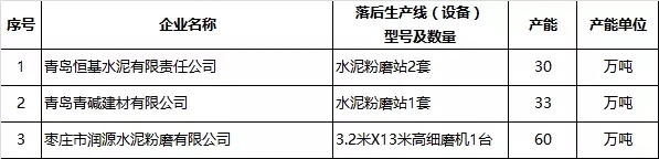 淘汰落后產(chǎn)能名單中包括三家水泥粉磨站企業(yè),合計(jì)淘汰水泥產(chǎn)能123萬(wàn)噸。具體情況如下表: