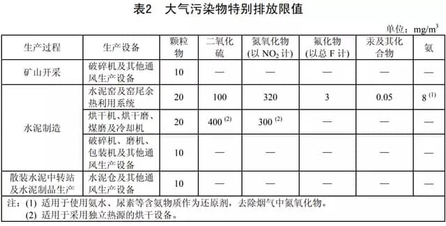摘自水泥工業(yè)大氣污染物排放標(biāo)準(zhǔn)(GB 4915-2013)