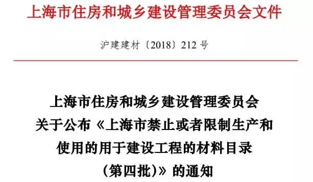 上海市禁止或者限制生產(chǎn)和使用的用于建設工程的材料目錄(第四批)