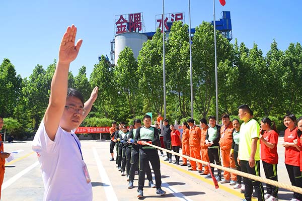 比賽嚴格按照九運會拔河比賽規(guī)則要求,開幕式前對每一位隊員的體重進行了嚴格測量,確保比賽的公平和公正。開幕式入場式中各公司代表隊,喊著響亮的口號,邁著整齊自信的步伐,走出了金隅人的自信和風采!隨后舉行了隆重的升旗儀式,所有人員神色莊嚴地面向升旗臺,伴隨著雄壯的國歌聲響起,大家的目光隨著國旗的緩緩上升而移動。整個升旗儀式簡短而隆重。贊皇金隅黨委副書記、紀委書記、工會主席郭書芬主持了開幕式,黨委書記常延輝代表全體干部職工致歡迎詞。冀中區(qū)域組長單位鼎鑫——靈壽區(qū)域公司黨委副書記、紀委書記、工會主席武相艷講話,比賽總裁判長宣布拔河比賽規(guī)則,裁判員代表與運動員代表分別宣誓,贊皇金隅經(jīng)理孫建勛宣布比賽開始。