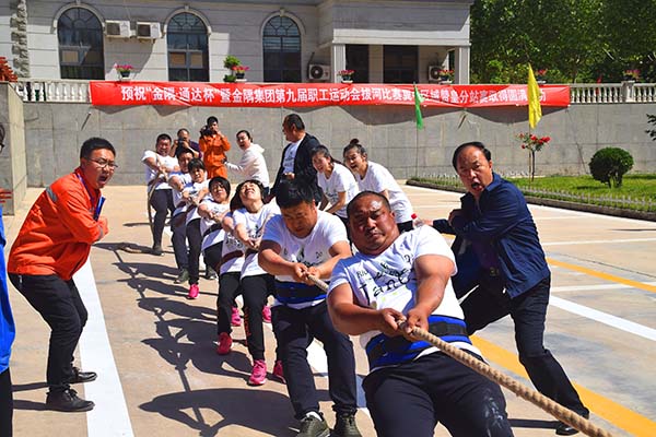 正式比賽前,現(xiàn)場工作人員帶領大家進行了拉伸運動。當比賽的哨聲響起,各公司的隊員們雙手緊握長繩,口中一齊高呼著“一二、一二”,團結(jié)一心,憋足了勁拼命向后拉,各公司啦啦隊為比賽隊員吶喊加油,哨子聲、吶喊聲,此起彼伏,飄蕩在贊皇金隅辦公樓廣場上空。經(jīng)過激烈的角逐,最終,鼎鑫——靈壽區(qū)域公司力壓群雄拔得頭籌取得冠軍,易縣——淶水區(qū)域公司榮獲亞軍,贊皇金隅公司榮獲季軍。