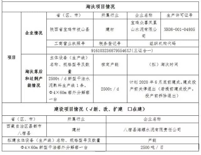4月16日廣西省工信委發(fā)布《廣西合山虎鷹建材有限公司水泥熟料生產(chǎn)線項(xiàng)目產(chǎn)能置換方案》公示,產(chǎn)能置換方案詳情如下: