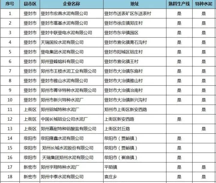 針對(duì)于超低排放限值,在上述通知文件附件《河南省2018年工業(yè)企業(yè)綠色升級(jí)作戰(zhàn)計(jì)劃》中描述為試點(diǎn)熟料水泥超低排放改造,2018年10月底前,鼓勵(lì)43家水泥熟料企業(yè)試點(diǎn)開展超低排放改造。