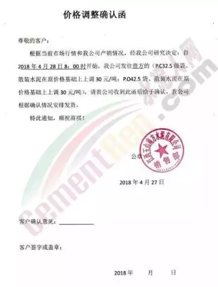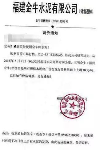5月7日早6:30起福建金牛水泥,所有規(guī)格水泥出廠價(jià)上調(diào)30元/噸。