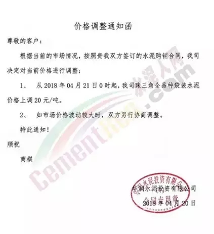 4月21日零時(shí)起華潤(rùn)水泥珠三角全品種袋裝水泥價(jià)格上調(diào)20元/噸