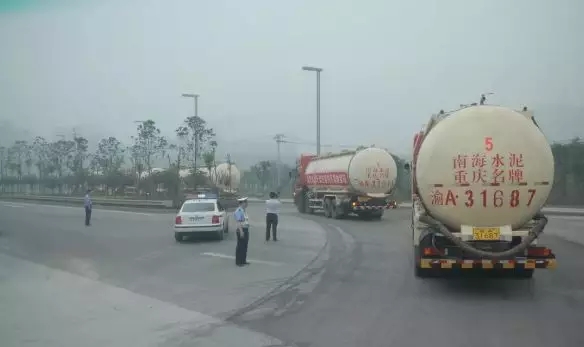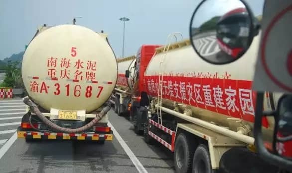 ▲ 運(yùn)送南海水泥的車隊(duì)在路上