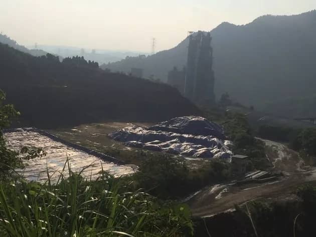 記者在野豬槽+295m平臺(tái)觀察到,剛好存在一處用藍(lán)色塑料布遮蓋的長(zhǎng)約20m、寬約2m的土堆,疑似上述報(bào)告表中提及的污染土壤儲(chǔ)存場(chǎng)所。不過(guò),該處并未設(shè)置混泥土圍擋,土堆的部分區(qū)域也裸露在外。