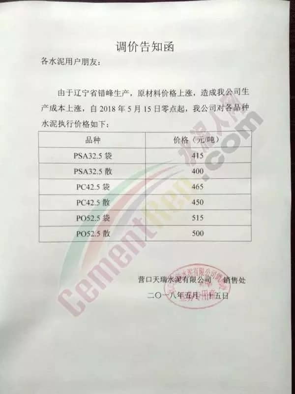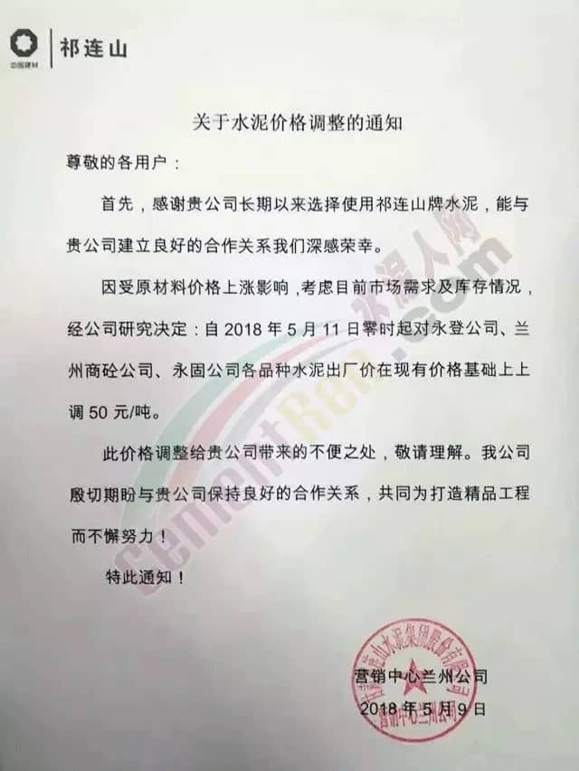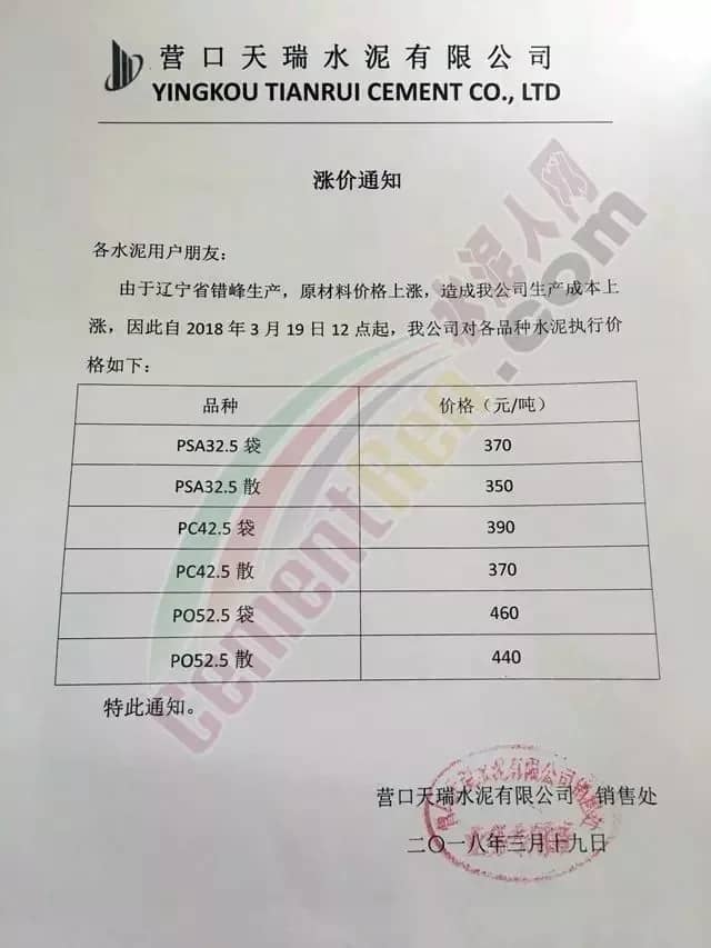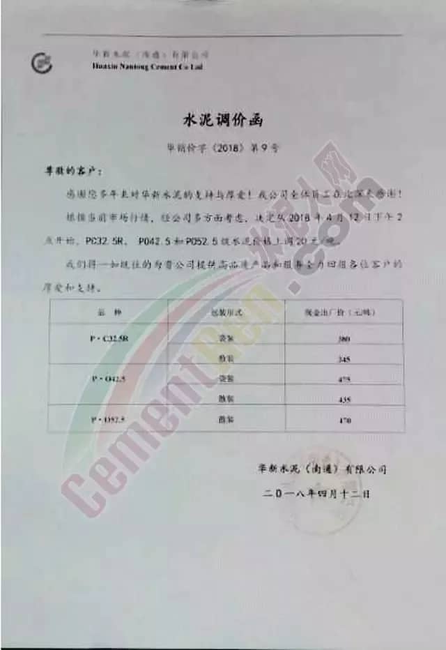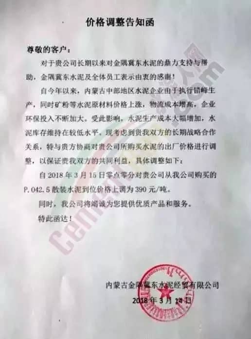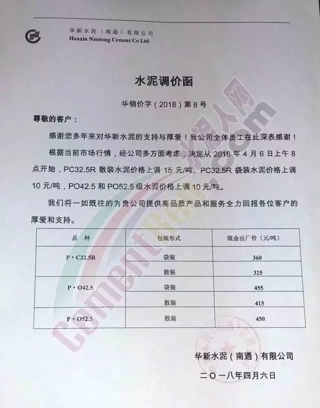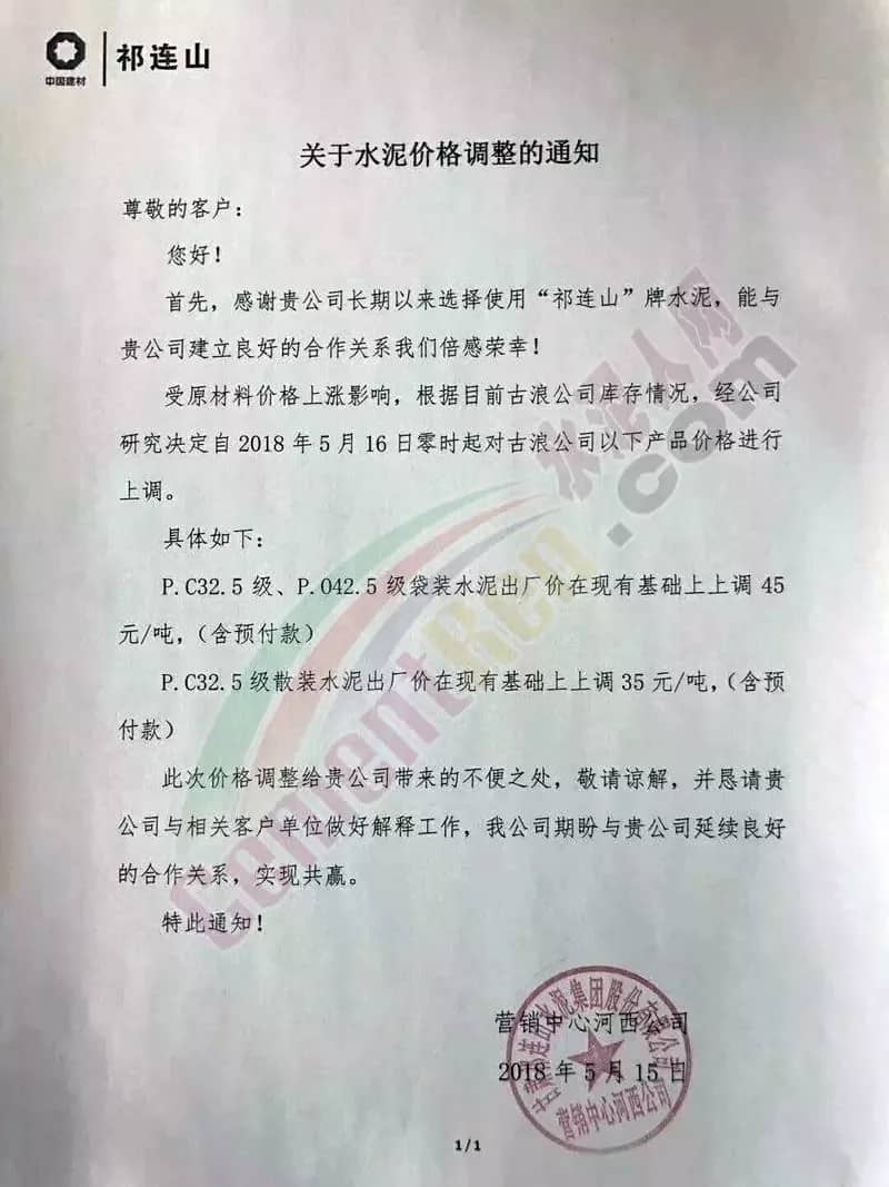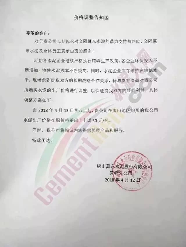 近一周來各地水泥企業(yè)頻發(fā)漲價(jià)通知,通知下游客戶上調(diào)水泥價(jià)格。此前相關(guān)市場(chǎng)分析人士曾預(yù)測(cè),2018年的水泥價(jià)格或?qū)⒊綒v史最高價(jià)。