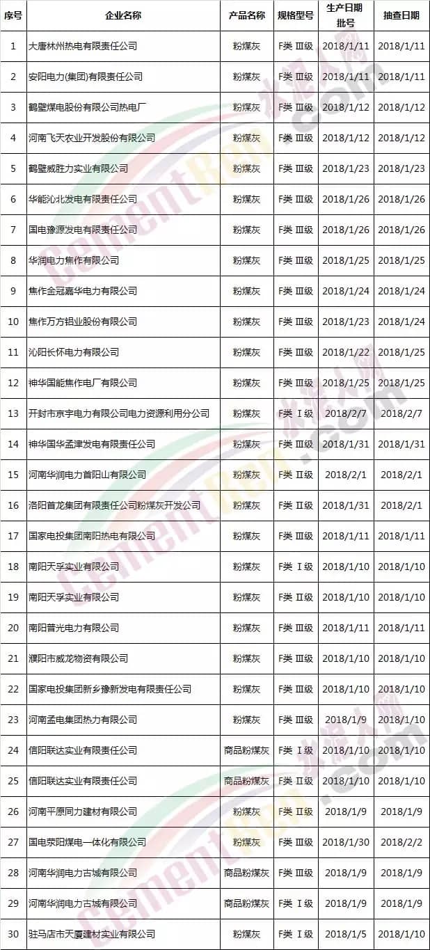 本次專項抽查共抽取了鄭州、開封、洛陽、安陽、鶴壁、新鄉(xiāng)、焦作、濮陽、南陽、信陽、駐馬店、濟(jì)源12個省轄市和長垣1個省直管縣29家企業(yè)生產(chǎn)的32批粉煤灰產(chǎn)品。