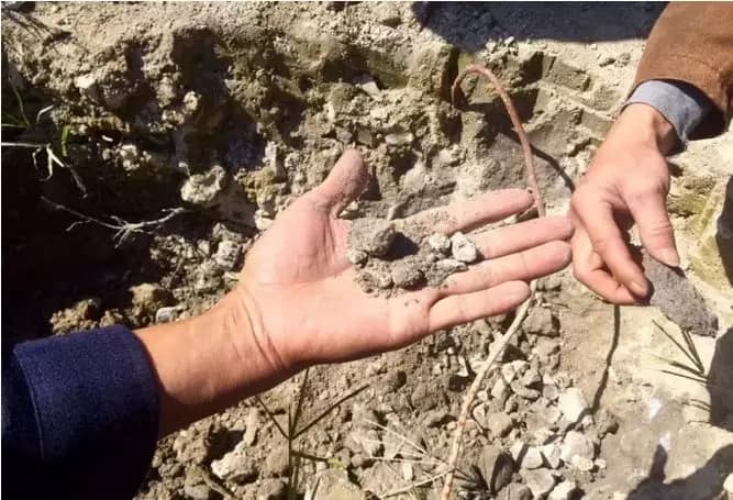 “我7月1日打樁,7日打好,8月2號就來試著挖下打得如何,結(jié)果一挖里面松松的,像這樣,鏟子一鏟就掉落,我們就發(fā)覺水泥不好,就自己拿去檢驗,不要害人,要政府部門說合格才行,結(jié)果檢驗了不合格,強度三分之一還達不到。”
