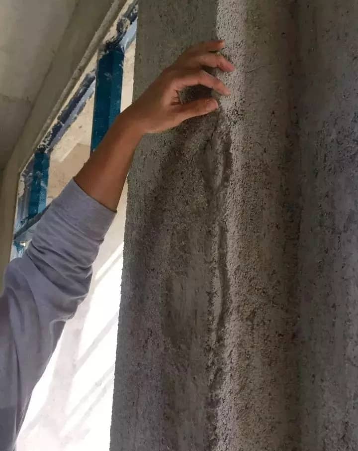 “這些水泥都沒凝固,用木頭一刮就掉下來,有時用手一擦都掉下來。”