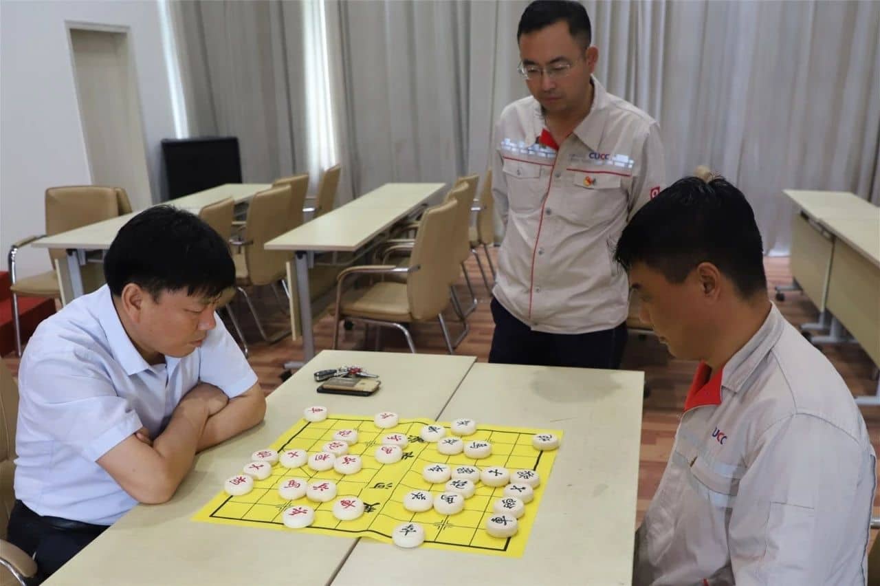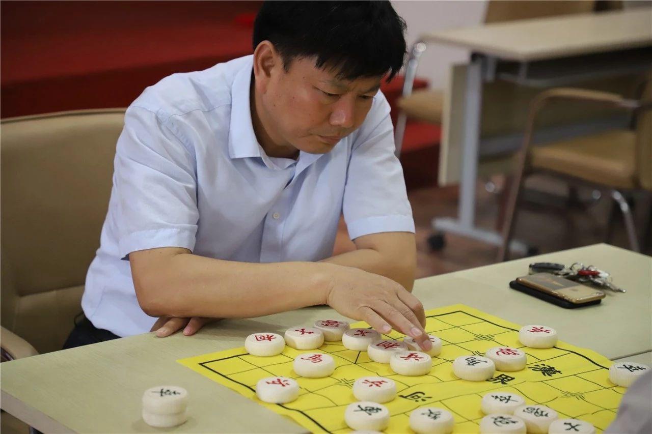 象棋比賽在公司禮堂舉辦。在沒有硝煙的博弈戰(zhàn)場上,參賽選手們鎮(zhèn)定自若,像指揮千軍萬馬的將軍那樣運(yùn)籌帷幄,指揮著棋盤上的棋子。楚河漢界,誰主沉浮!緊張的比賽現(xiàn)場似乎能讓觀棋者想象到戰(zhàn)車滾滾、馬蹄聲聲、炮聲隆隆的古戰(zhàn)爭場面!
