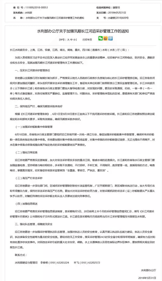 據(jù)悉,日前國家水利部印發(fā)通知從6月1日至9月30日長江宜賓以下干流河道禁止采砂。