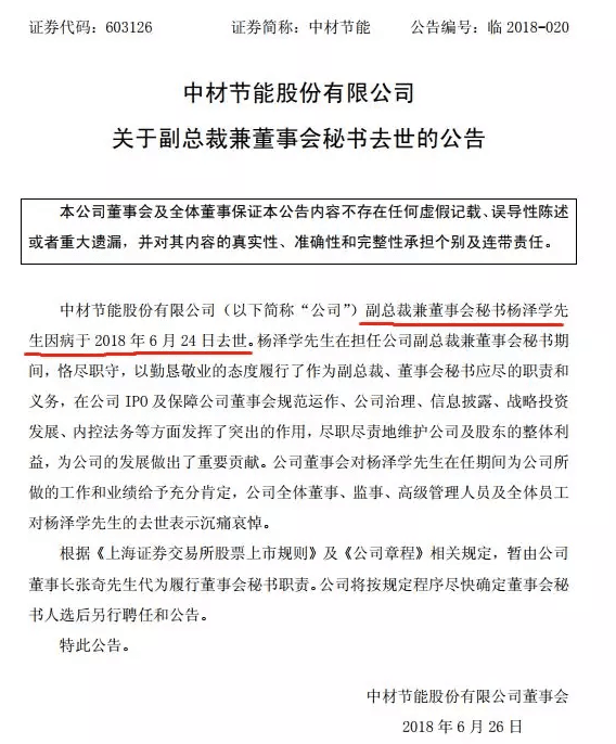 中材節(jié)能副總裁、董秘楊澤學(xué)