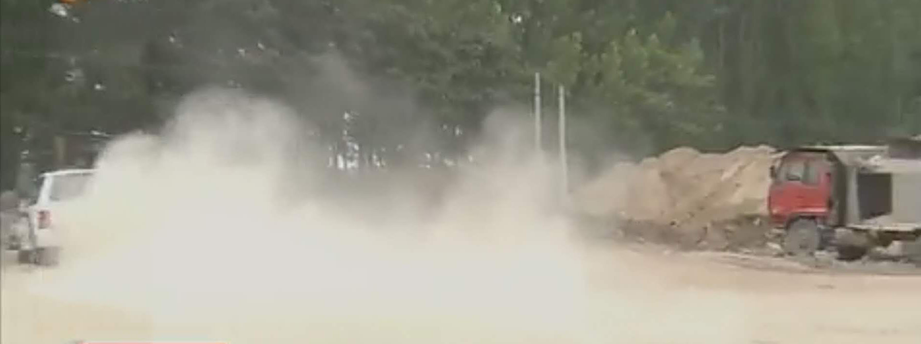 由于地面未經(jīng)硬化,積塵嚴(yán)重,僅僅一輛汽車駛過(guò),就掀起大量揚(yáng)塵,近距離內(nèi)讓人無(wú)法睜開眼睛。而該碎石場(chǎng)距離村民住宅不足50米。