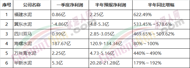 【水泥人網(wǎng)】近期已經(jīng)有多家水泥企業(yè)上市公司發(fā)布了半年業(yè)績預告,且都公告大賺。