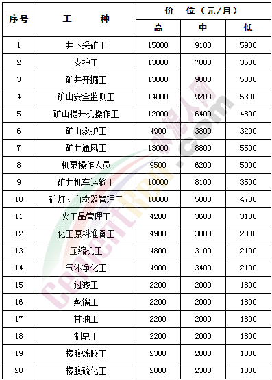 煤礦工人的工資,以山西長治市為例。依據(jù)長治市2017年勞動力市場工資指導價位井下采礦工月工資額在1.5萬元~5900元之間。
