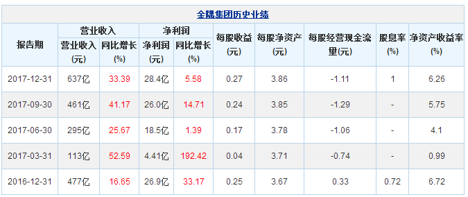 金隅集團(tuán)3月30日最新公布的2017年年報(bào)顯示,其營(yíng)業(yè)收入637億元,同比增長(zhǎng)33.39%;歸屬于上市公司股東的凈利潤(rùn)28.4億元,同比增長(zhǎng)5.58%。