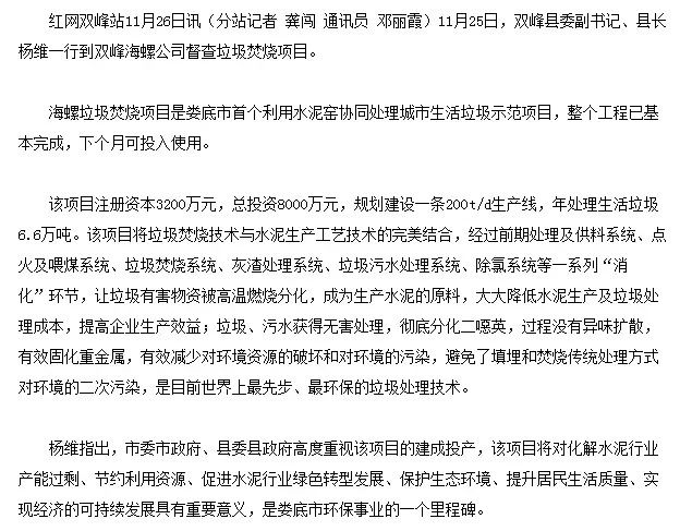 雙峰海螺+垃圾焚燒,大量有關稱贊該項目的報道