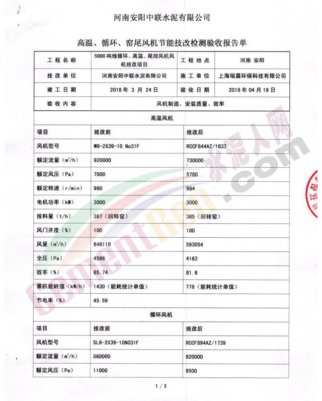 據(jù)水泥人網(wǎng)了解,南方水泥、中聯(lián)水泥、華新水泥、葛洲壩水泥、金隅水泥、紅獅水泥、天瑞水泥等龍頭企業(yè)均采用了上海瑞晨環(huán)保科技有限公司(以下簡稱“瑞晨環(huán)保”)的高效風(fēng)機(jī)綜合節(jié)能解決方案,改造后節(jié)能效益顯著,得到高度認(rèn)可與好評,準(zhǔn)備在集團(tuán)內(nèi)廣泛推廣。