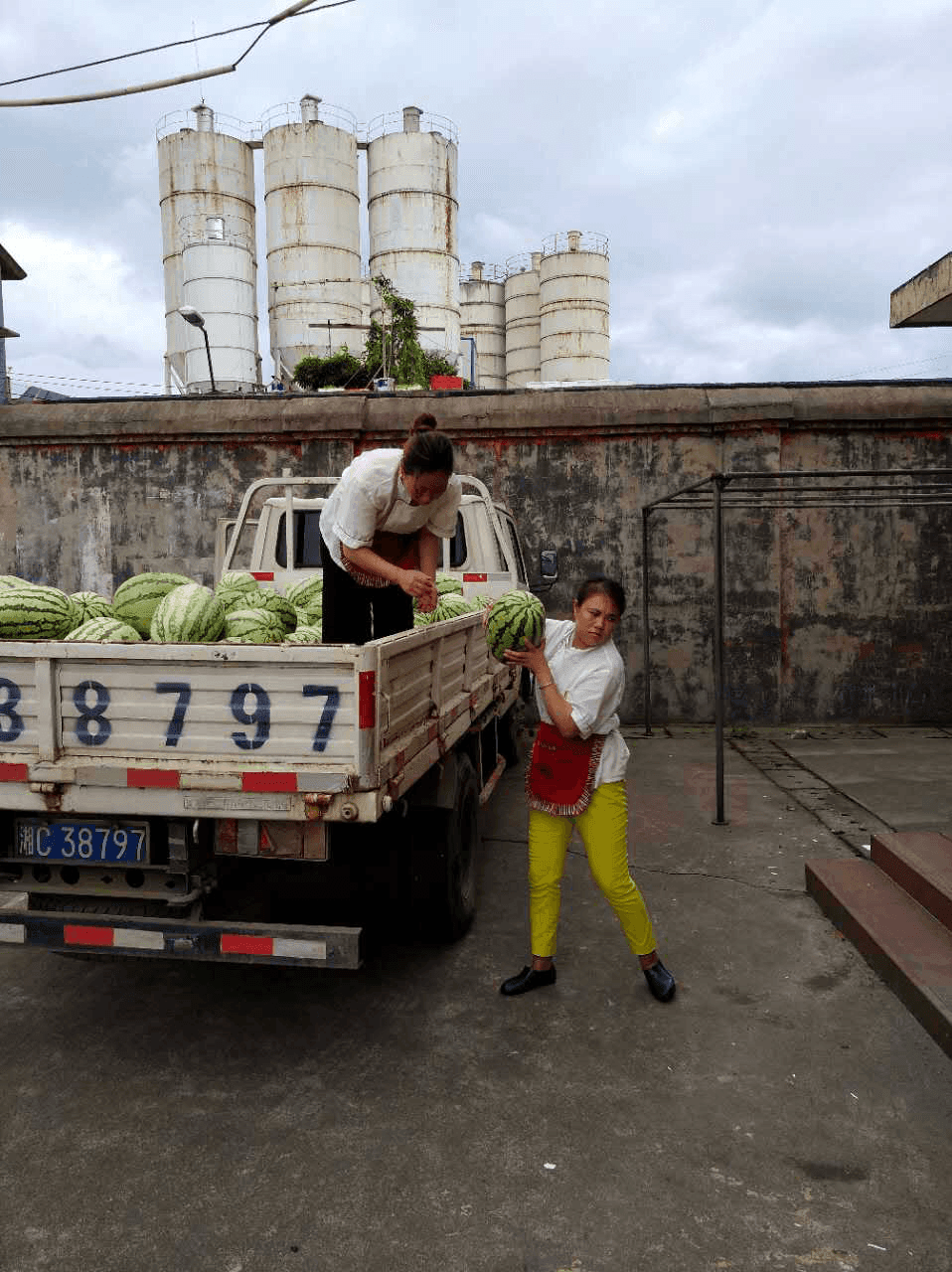 三、定時(shí)定點(diǎn)送涼茶、綠豆稀到現(xiàn)場(chǎng),給員工分發(fā)西瓜