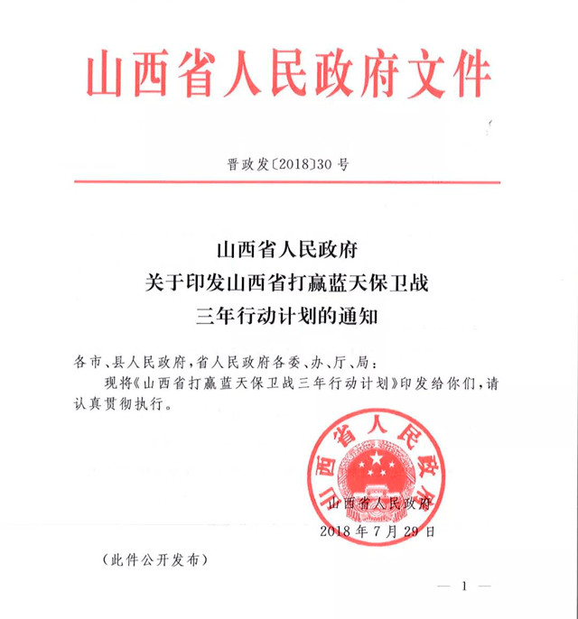 山西省打贏藍(lán)天保衛(wèi)戰(zhàn)三年行動(dòng)計(jì)劃提到,為認(rèn)真貫徹落實(shí)中共中央、國(guó)務(wù)院《關(guān)于全面加強(qiáng)生態(tài)環(huán)境保護(hù)堅(jiān)決打好污染防治攻堅(jiān)戰(zhàn)的意見)(中發(fā)[2018]17號(hào))、《國(guó)務(wù)院關(guān)于印發(fā)打贏藍(lán)天保衛(wèi)戰(zhàn)三年行動(dòng)計(jì)劃的通知》(國(guó)發(fā)辦[2018]22號(hào))精神,堅(jiān)決打贏山西省藍(lán)天保衛(wèi)戰(zhàn),制定《山西省打贏藍(lán)天保衛(wèi)戰(zhàn)三年行動(dòng)計(jì)劃》(以下簡(jiǎn)稱“行動(dòng)計(jì)劃”)。